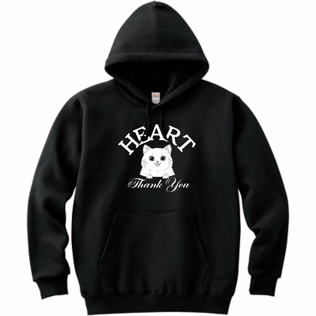 パーカー HEART 猫 ブラック